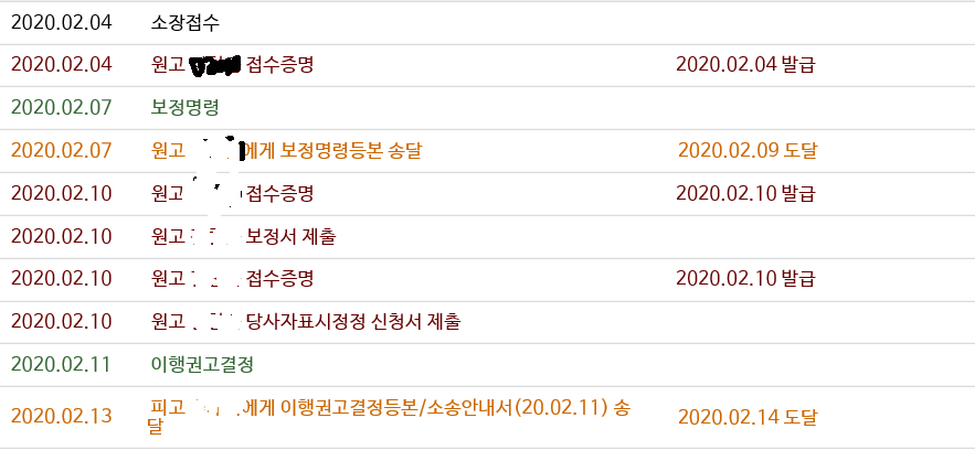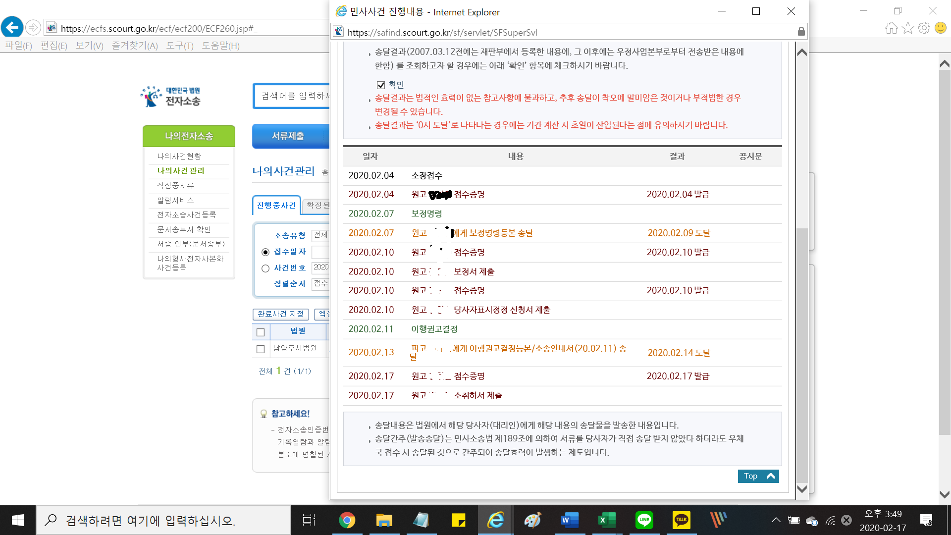2. 소장 제출 이후의 진행사항과 소송문서가 피고에게 도달했다는 로그를 확인할 수 있다!